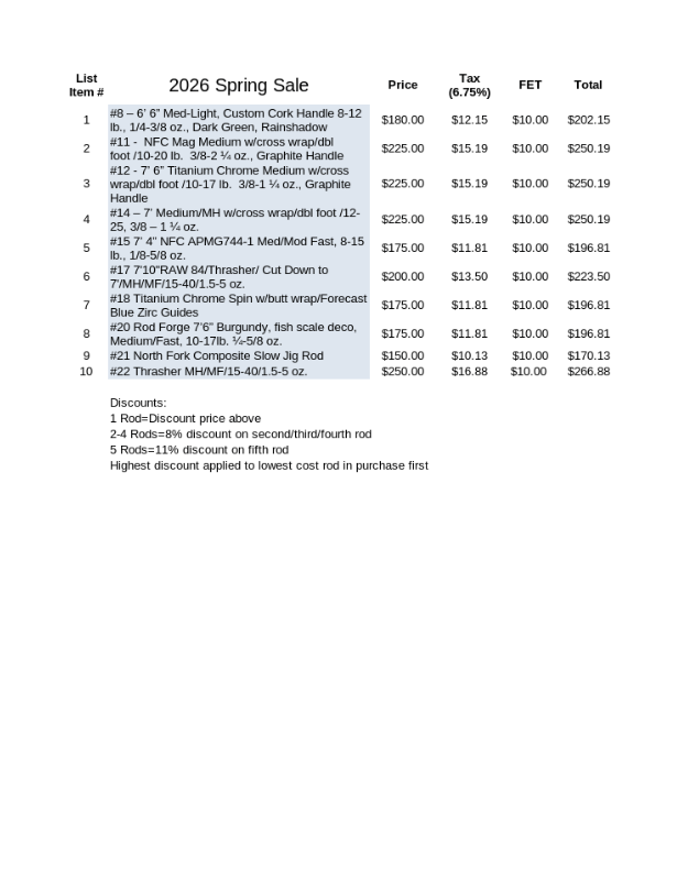2026 Spring Clearance Sale Sale Dates (April 6 thru April 13th) Sale Price(s) and Discounts (local pickup only) Share this: Share on X (Opens in new window) X Share on Facebook (Opens in new window) Facebook Like Loading...